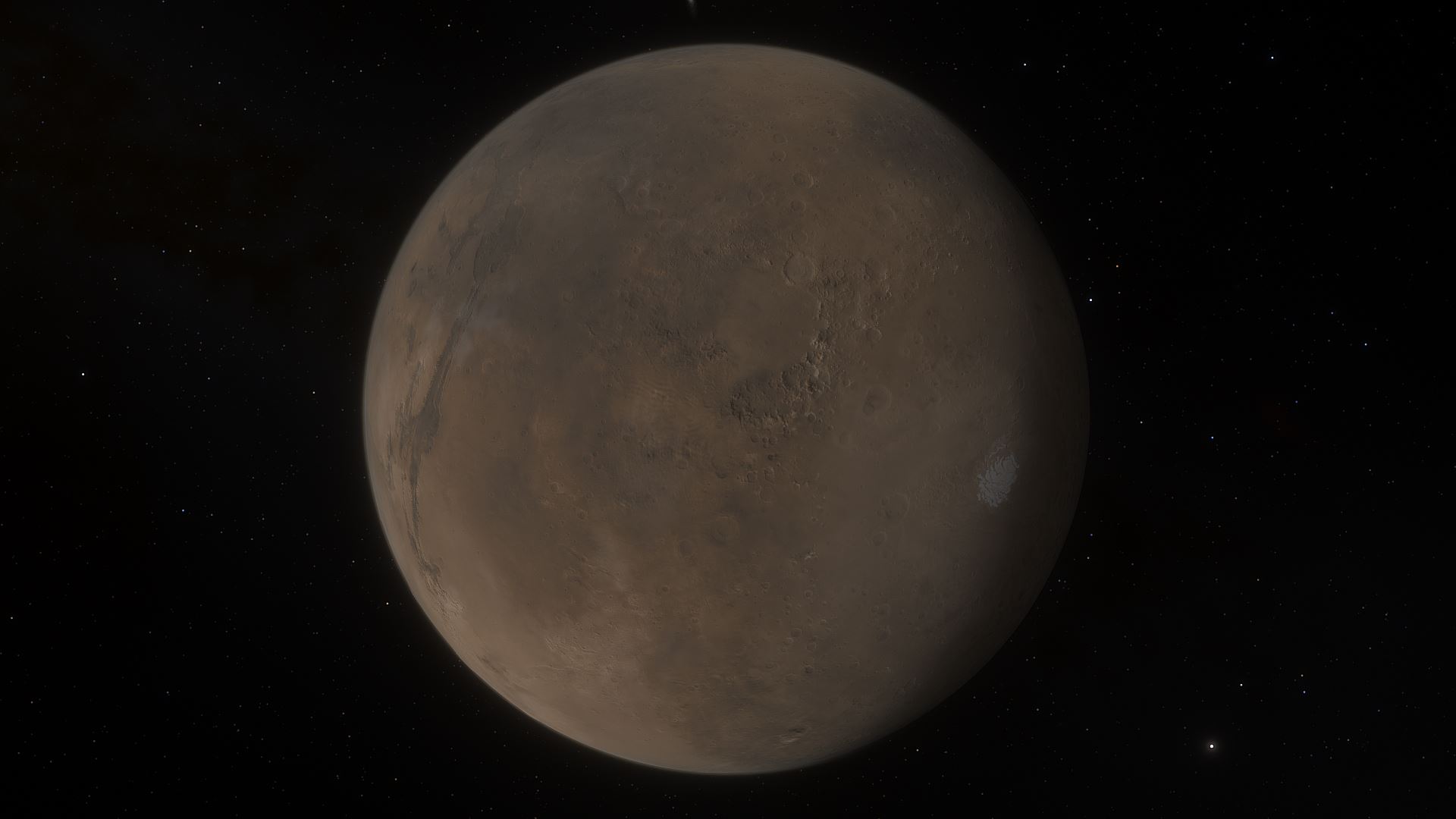 화성은 태양계에서 네 번째 행성이며 지구 (암석) 행성의 가장 바깥쪽에 있다. 그것은 수십억 년 동안 천천히 우주로 빠져 나가는 얇은 이산화탄소 대기를 가지고 있으며 너무 얇아서 행성의 기후를 상당히 조절하기 어렵다.
